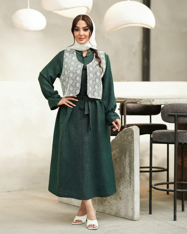 🧵جنس پارچه :شانتون لنین ترکیب با گیپور دانتل ترک